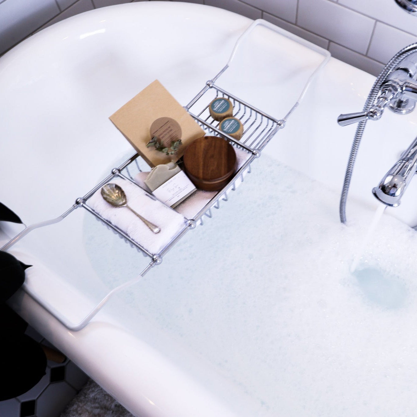 - Claw foot bath tub for long soaks w Soaps by Soap Bar Co & magnesium Bath Soak by The Gunbower Butter Factory